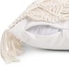 Boho Macrame Pillow Cover 18 x 18 Inches 2PCS Throw Pillowcase Hand Knit Cream Decorative Cushion Case with Tassel for Sofa Couch Chair Bed
